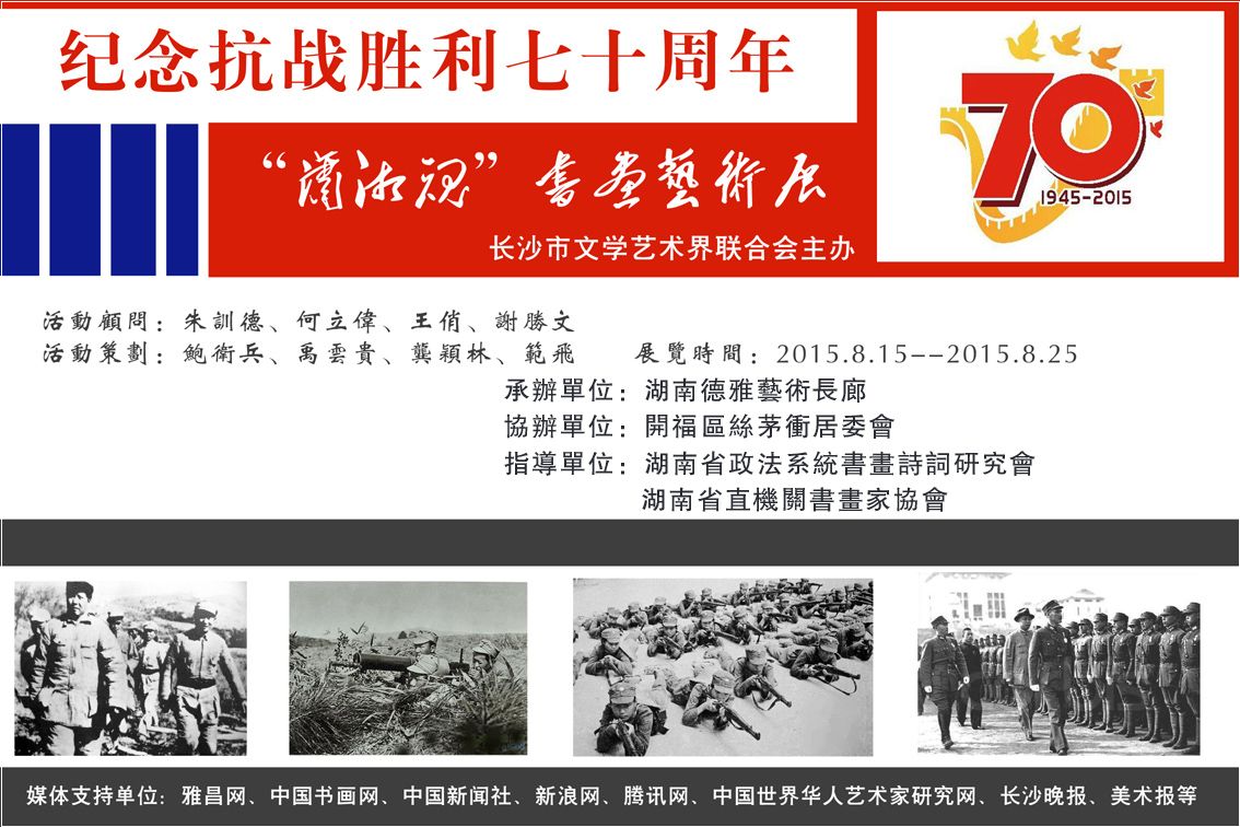 为了纪念抗战胜利七十周年,由长沙市文学艺术界联合会主办,湖南德雅艺术长廊文化传播有限公司承办的“潇湘魂”大型书画展于2015年8月15日—25日在湖南德雅艺术长廊艺术展厅隆重举办。